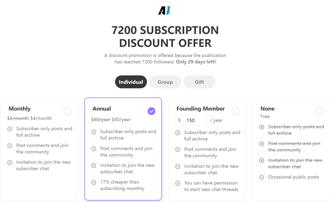 "AI Disruption" 1-Year Anniversary: 7,257 Subscribers & 20% Off!