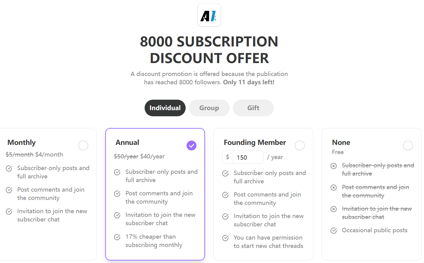 "AI Disruption" 1-Year Anniversary: 8,050 Subscribers & 20% Off!