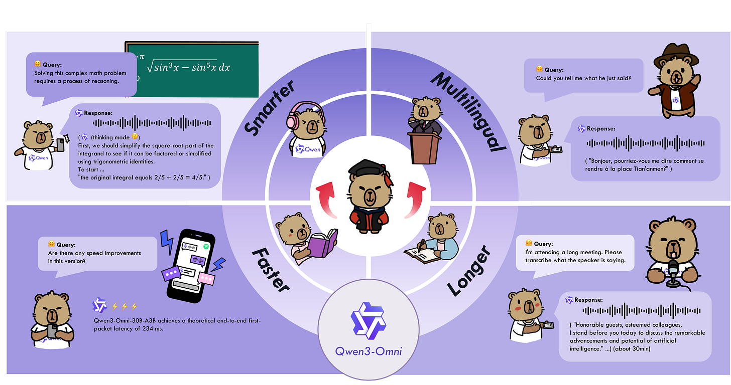 Qwen3-Omni can seamlessly process multiple input formats, including text, images, audio, and video, and simultaneously generate text and natural speech output through real-time streaming responses.