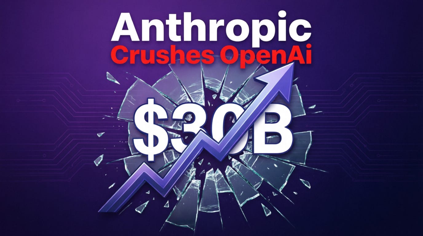 Anthropic hits $30B revenue, crushing OpenAI in the AI throne race.