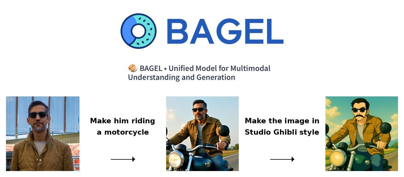 But that’s not all. Their latest integrated multimodal model, BAGEL, aims for “grand unification,” consolidating functions like image-based reasoning, image editing, and 3D generation into a single model.