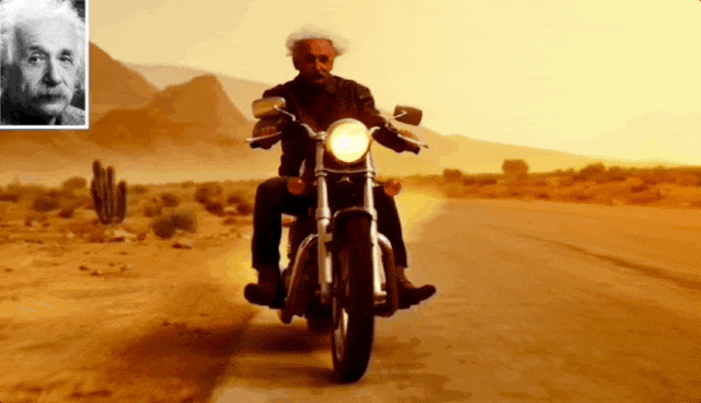 For example, an Einstein-inspired high-speed motorcycle video, with results like this: