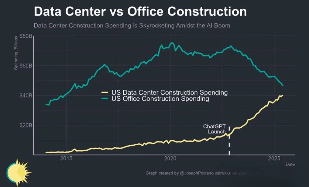 AI replaces 500K US jobs! Data center spending surpasses offices. Grads face hiring black hole. Is AI the new GDP driver? Read shocking details.