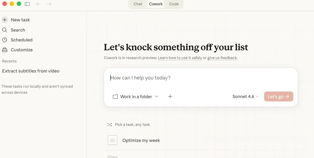 This feature is seamlessly integrated into Cowork. We’ve introduced Cowork before — it’s a desktop-side Claude Agent specifically designed for non-programmers. It requires zero command-line experience and no setup of any development environments. You can start using the powerful features of Claude Code right away.