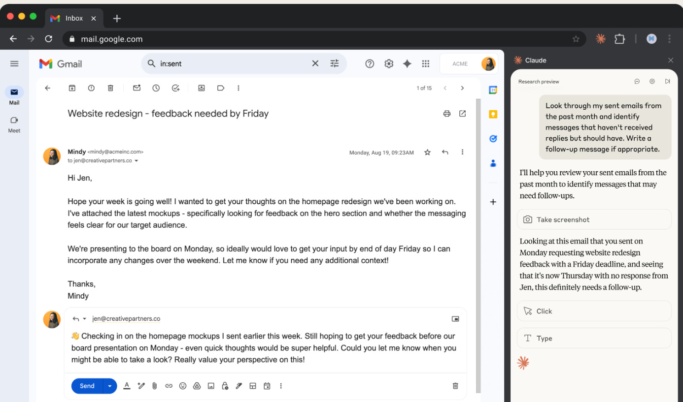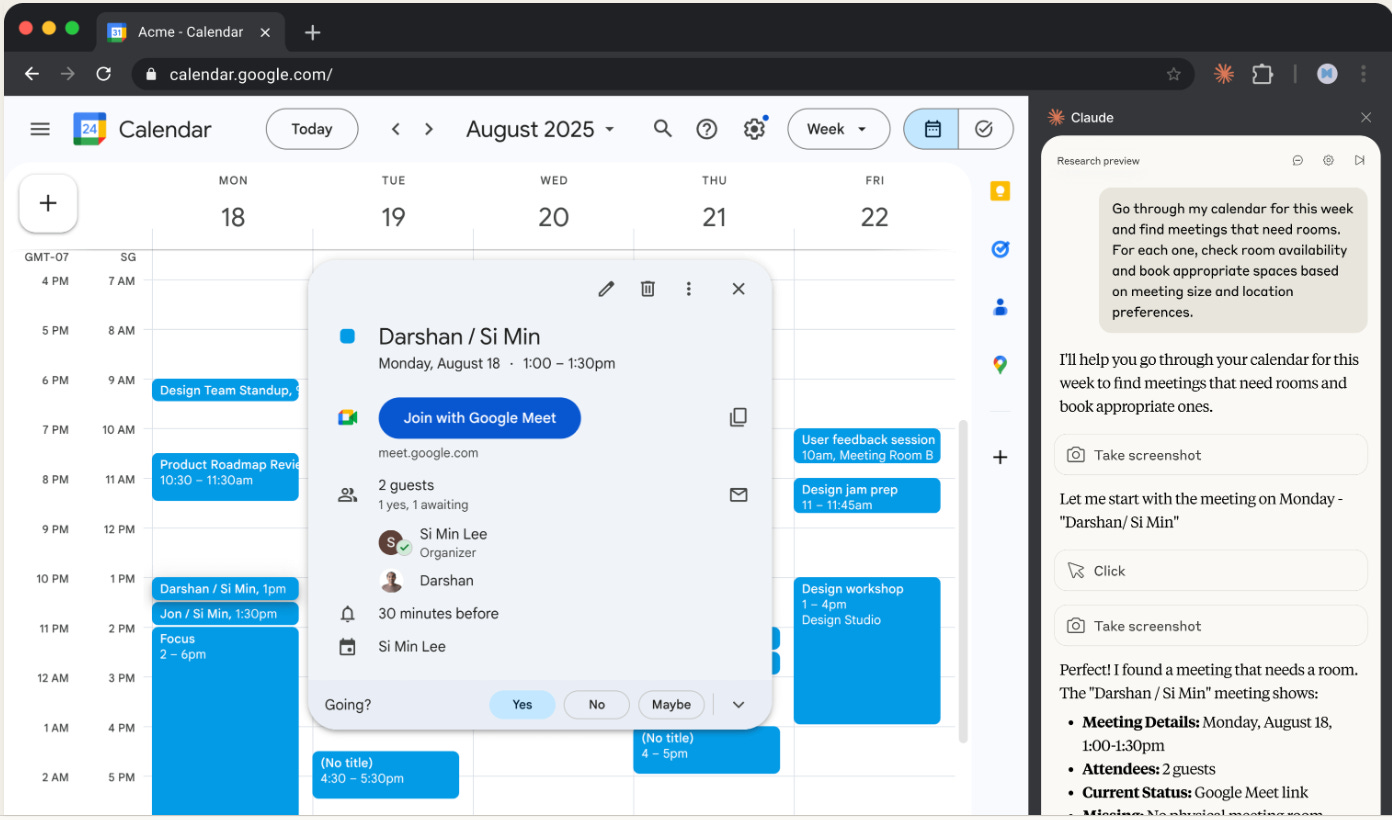 Claude for Chrome: Anthropic's new AI browser extension. Book meetings, reply emails, and more—safely. Join waitlist now.