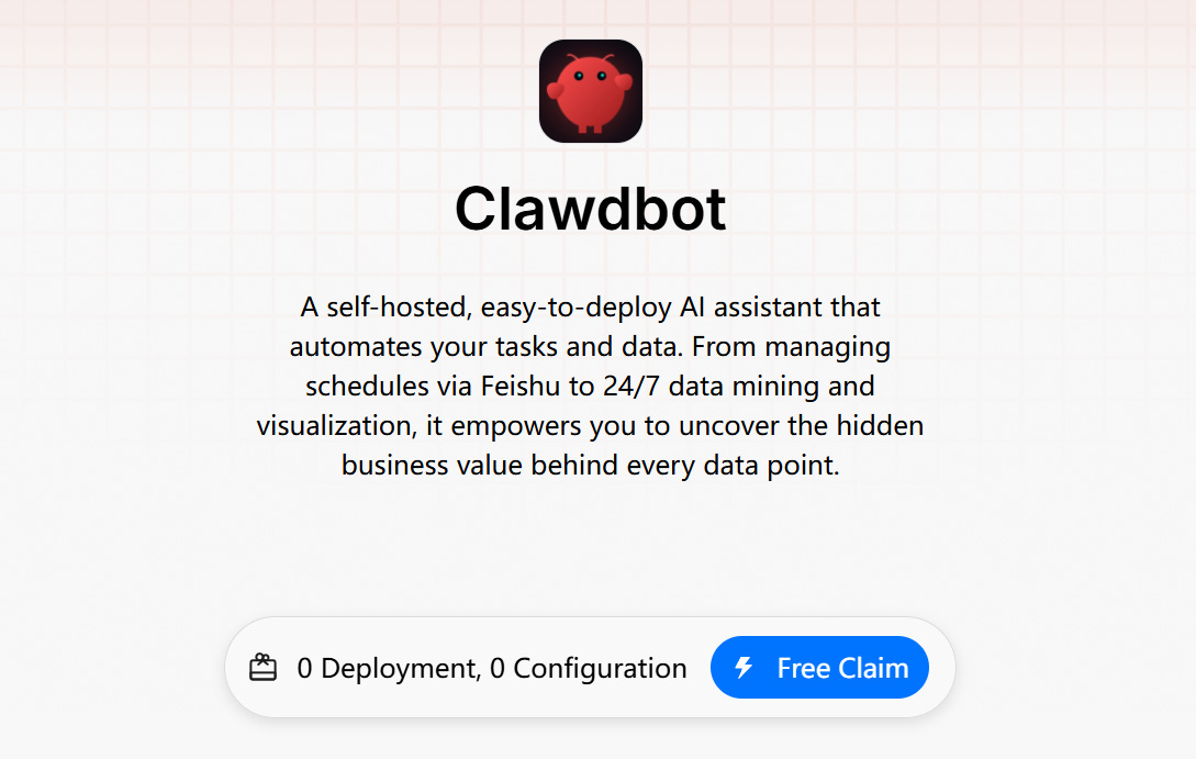 The Teamo platform has now integrated Clawdbot with over 10,000 domain-specific databases and tools across finance, business, social media, and more. Users can claim their own Clawdbot with just one click! It truly achieves zero deployment, zero configuration.