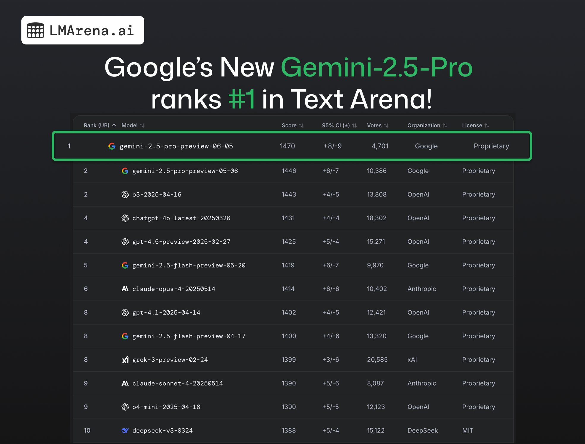 Gemini 2.5 Pro #1: Beats o3 in Reasoning, Opus4 in Coding