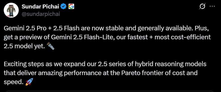 Google CEO Sundar Pichai tweeted that the newly introduced Gemini 2.5 Flash-Lite is the most cost-effective model in the 2.5 series.