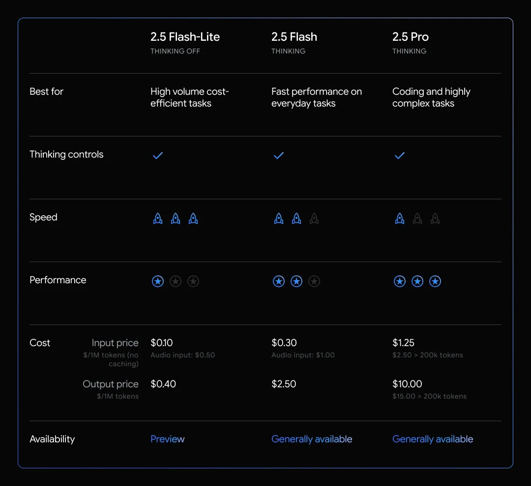 Google positions 2.5 Flash-Lite for “high-volume, cost-efficient tasks.” In contrast, 2.5 Pro is suited for programming and high-complexity tasks, while 2.5 Flash strikes a balance, ideal for daily tasks requiring faster speeds.