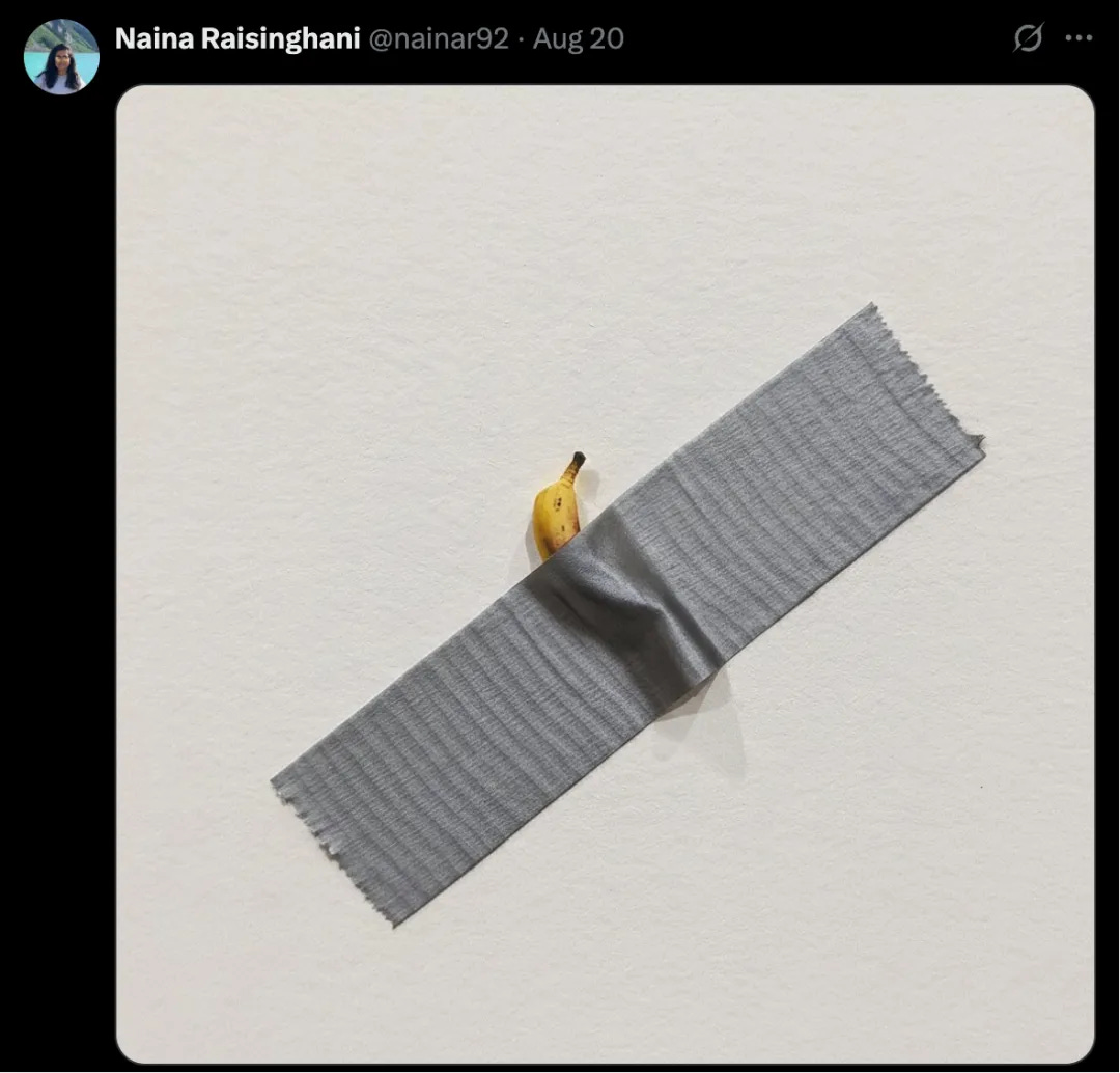 Naina Raisinghani, a Google DeepMind product manager, also posted an image similar to Italian artist Maurizio Cattelan's 2019 artwork featuring a banana taped to a wall.