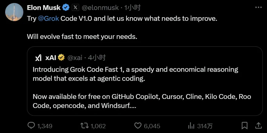 This Thursday, Elon Musk's xAI officially launched its latest code model, Grok Code Fast 1.