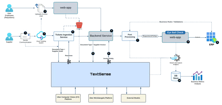 TextSense is Uber’s in-house document processing engine and is the real hero of this story. It’s modular, reusable and not invoice-specific. This means Uber can extend it to other document types down the line (contracts, receipts, etc.).