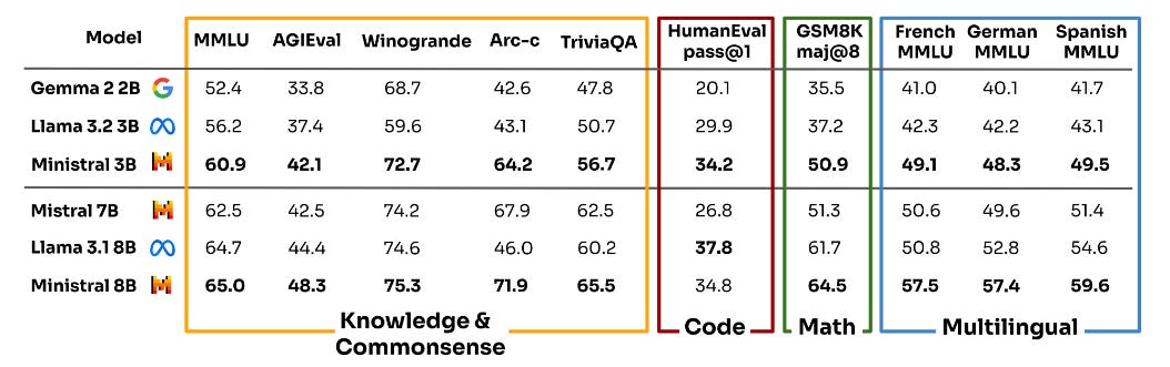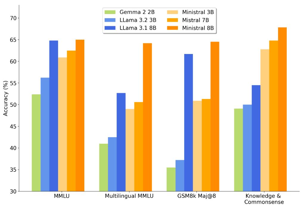 According to Mistral.AI's test results, Ministraux performs impressively. For instance, the 3B model achieved high scores of 60.9, 42.1, 72.7, 64.2, and 56.7 on popular benchmarks such as MMLU, AGIEval, Winogrande, Arc-c, and TriviaQA, respectively.