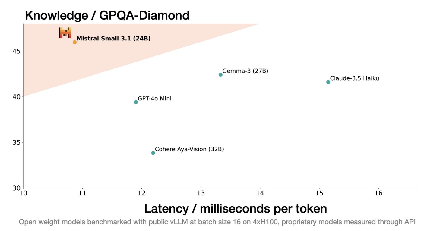 French AI startup Mistral AI has just open-sourced a 24B multimodal compact model that outperforms comparable models like Gemma 3 and GPT-4o Mini across multiple benchmarks. With an inference speed of 150 tokens/sec, it’s both powerful and fast.