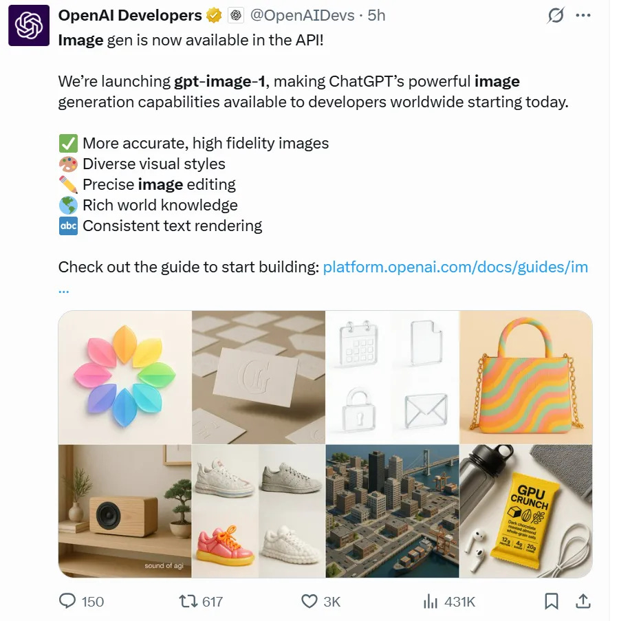 Just now, OpenAI announced more good news: they have officially launched the native model powering ChatGPT’s multimodal experience—gpt-image-1—in their API, enabling developers and businesses to easily integrate high-quality, professional-grade image generation capabilities directly into their tools and platforms.
