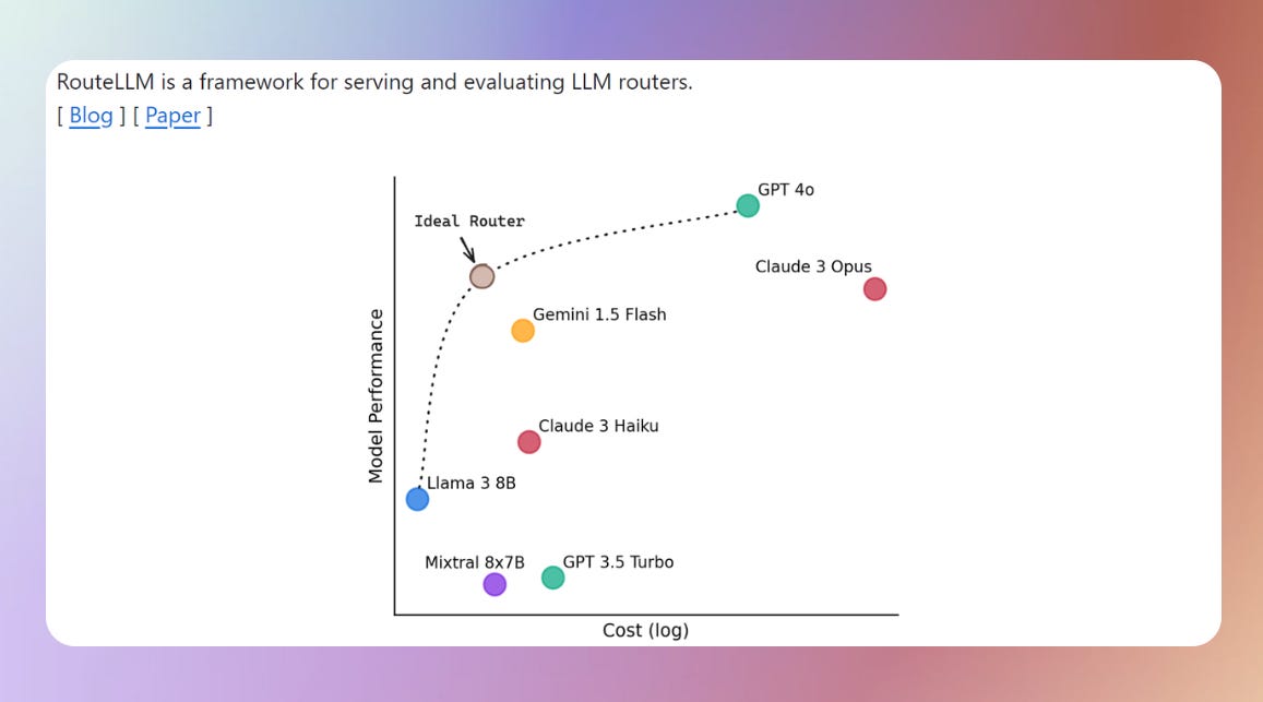 RouteLLM is an open-source framework for intelligent routing between models of different capabilities to reduce costs while maintaining answer quality. It can route simple queries to cheaper models without compromising quality. The framework provides pre-trained routers and is easily extendable to include new routers and compare their performance across multiple benchmarks.