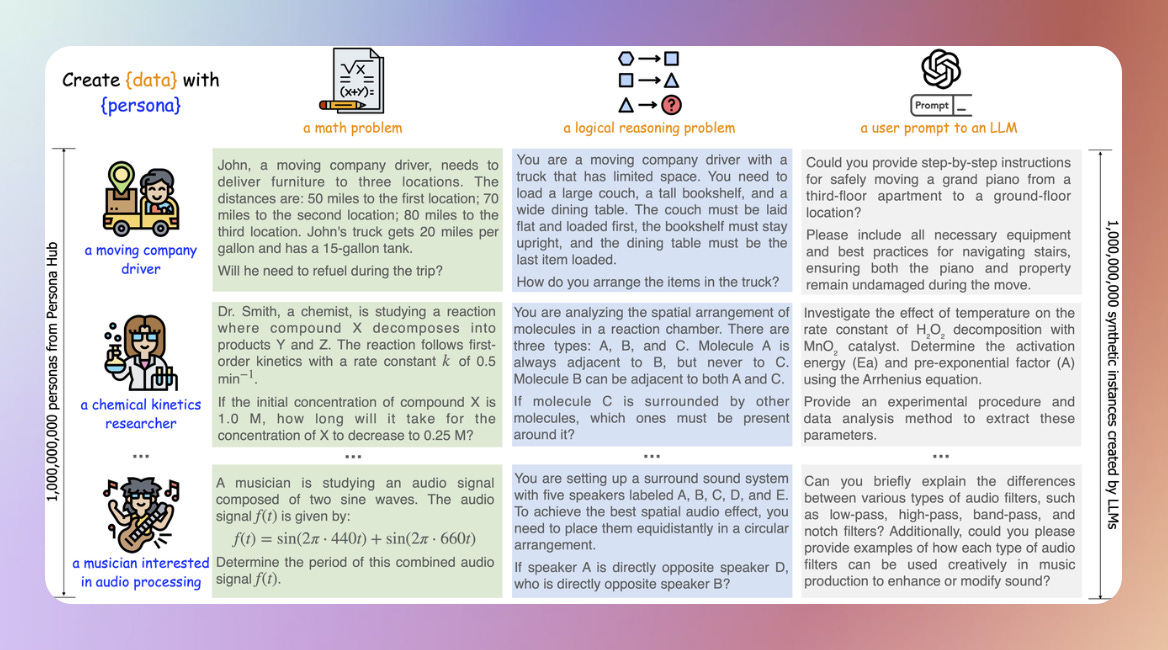 PERSONA HUB is an innovative data synthesis technology based on roles, using diverse perspectives from LLMs to generate varied synthetic data. The project integrates 1 billion roles, serving as distributed knowledge points, enabling large-scale, multi-scenario data synthesis. Use cases include creating high-quality math and logic problems, generating user prompts with instructions, producing rich textual content, designing game NPCs, and developing utility functions. PERSONA HUB's features suggest it may lead to new trends in synthetic data creation and practical applications, significantly impacting LLM research and development.