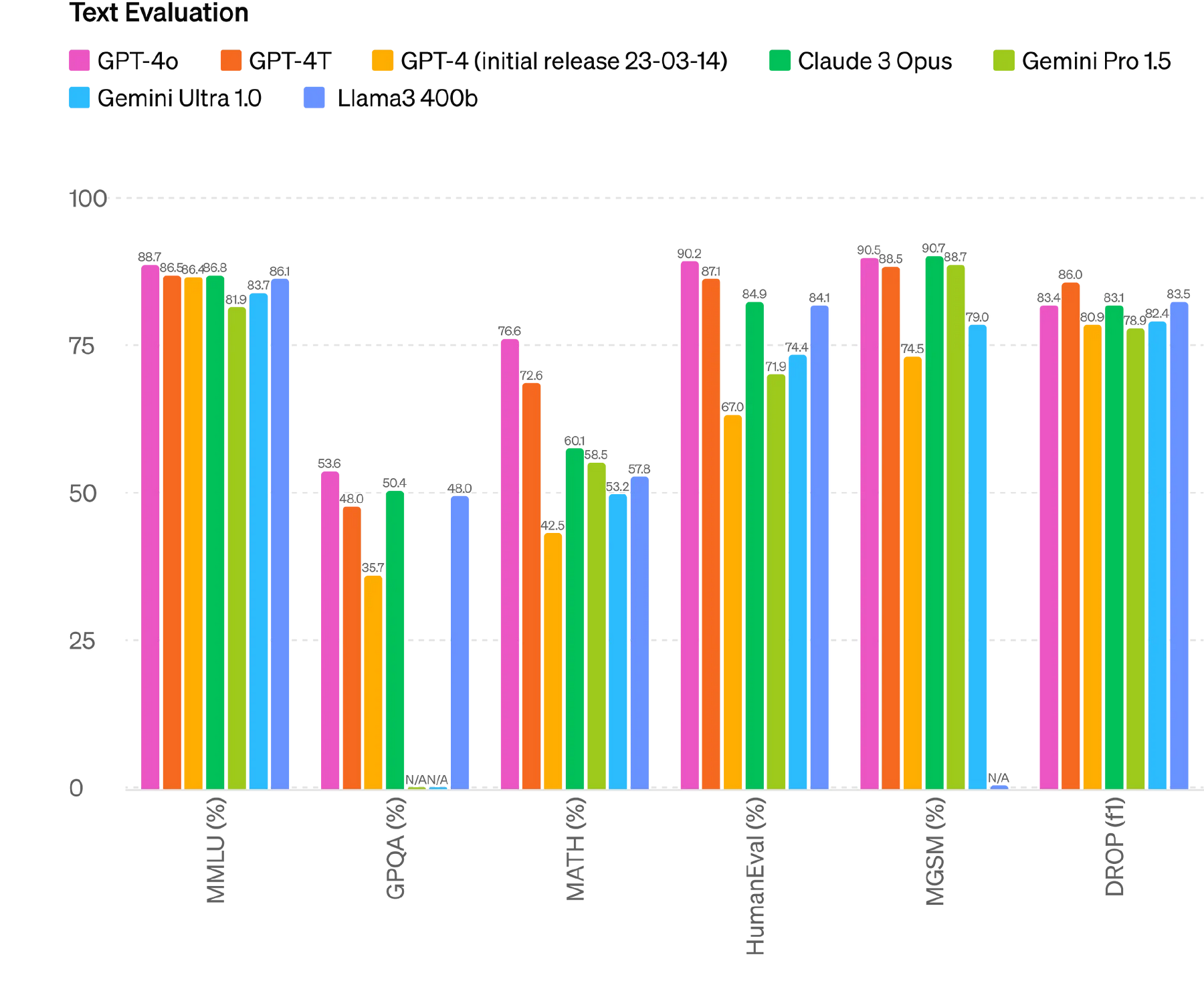 GPT-4o achieved a new high score of 88.7% on 0-shot COT MMLU (common sense Q&A). This means it can accurately answer various common sense questions without special training.