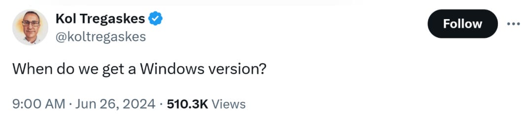 This move sparked envy among Windows users, who were eagerly asking when they would have access to a Windows version of ChatGPT.